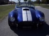 1966 Replica Cobra: Blue with silver stripes, ONLY 1,700 miles, 96" frame, professionally built stroked 408 (525 HP), Mocal oil cooler, CNC remote oil filter adapter, AN fittings and stainless steel braided oil lines, Tremec T5 transmission, Corvette brakes and suspension, stainless steel brake lines, adjustable QA1 coil over shocks with damper controls, polished stainless steel bumper jacks, chrome framed windshield, wind wings and sun visors, Stewart Warner gauges, Flaming River tilt steering column, 15" Moto-Lita mahogany and birch steering wheel, Crow Industries 5 point racing harness, Team III wheels front 245 45 ZR17, rear 315 35 ZR17.