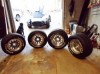 This is a set of WAW wheels with 4.5 circle on back. Wheels have almost new Goodyears Eagles 255 front and 275 rear tires. Includes new adaptors, pins and wing nuts. Would also trade someone with dual pattern Trigos.