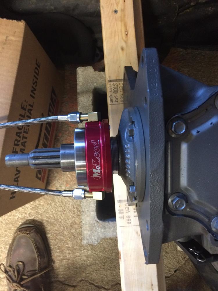 So, have kept up the pace a little, although was slowed down slightly for a couple of days. Realized that the slave cylinder and fork setup was not going to work due to space considerations, so had to order a hydraulic throwout bearing. When it arrived I was test fitting it on the Toploader, and these things are a tight fit. Well, the transmission was sitting on top of a couple of 2x4's on top of concrete blocks and as I was trying to slide the throwout bearing onto the shaft the transmission slipped and fell on my left-hand middle finger. Split it open like a hot dog/sausage on a grill. Let loose a few choice words and then finished placing the bearing on the shaft. It was after that that I realized i was bleeding quite well and that a bandied would not be sufficient, so it was off to urgent care for a little surgical glue. The NP did mention what big hands I have! Seriously though, I really do have big hands for my size, I can palm a basketball with either hand ad am only 5'10".
