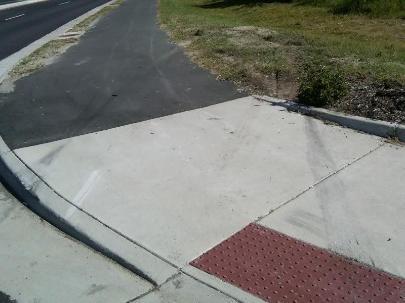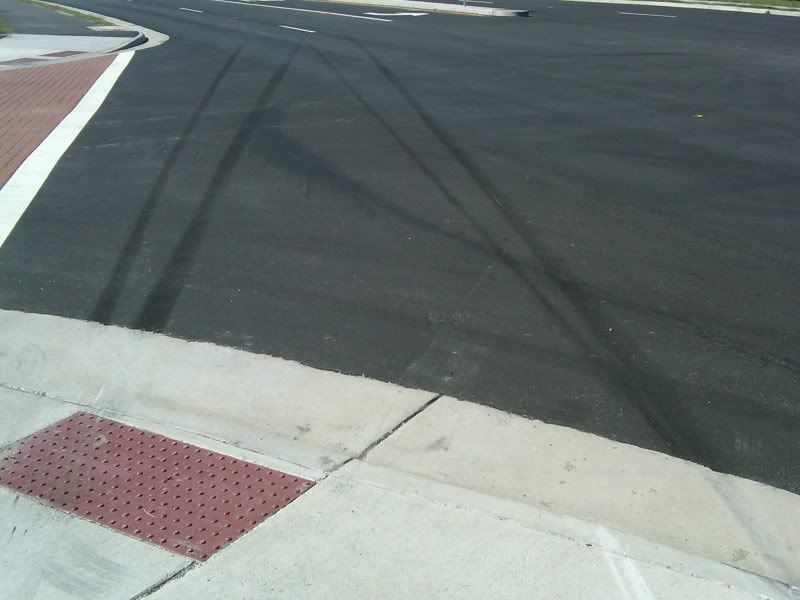 Here's the skid marks as I left the road and entered onto the sidewalk. You can see the hard angle that I shot into and across the inside lane. Man, what a lucky guy... http://i140.photobucket.com/albums/r...00919-1114.jpg Here's the entry point where I went up onto the sidewalk, taking out some mulch and a bush on the way. BTW... I did straighten up the mulch and replant the uprooted bush before I left. Gotta think green:rolleyes: I came to rest inches away from an elevated manhole. http://i140.photobucket.com/albums/r...00919-1114.jpg Here's the sidewalk's rear wheel impact point. Also a close-up of where the rear wheel hit. I was sliding driver's side forward. What's troubling is the large scrape behind the wheel impact. It looks like my frame scraped or something. I'm getting ready to head out to the garage and ger her into the air for an inspection. I'll post pics of findings, if any. http://i140.photobucket.com/albums/r...0919-11142.jpg http://i140.photobucket.com/albums/r...00919-1118.jpg |