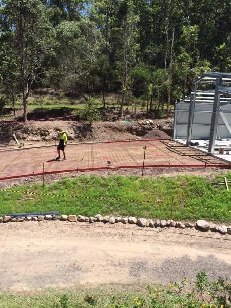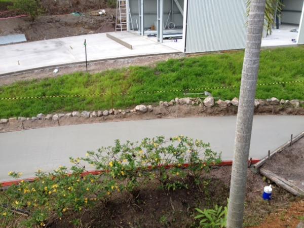 Top driveway. We get a bit of rain up here and I am at the base of a mtn so to help with water flow we've banked the edges of the slab so as the water will funnel down to my lower spoon drain. It should help in stopping my sloped bank getting badly eroded.