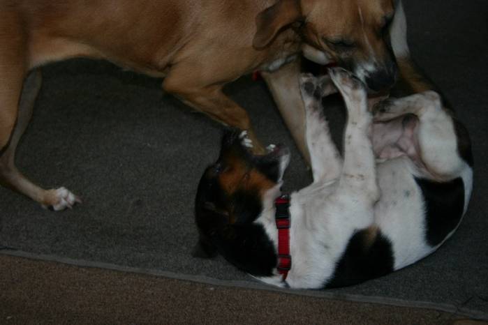 Piko and Kimo! My two dogs in a match. Don't under estimate the 'small block', he's a fierce contender against the 'big block'.    			 Last edited by Excaliber; 12-08-2006 at 09:36 AM..