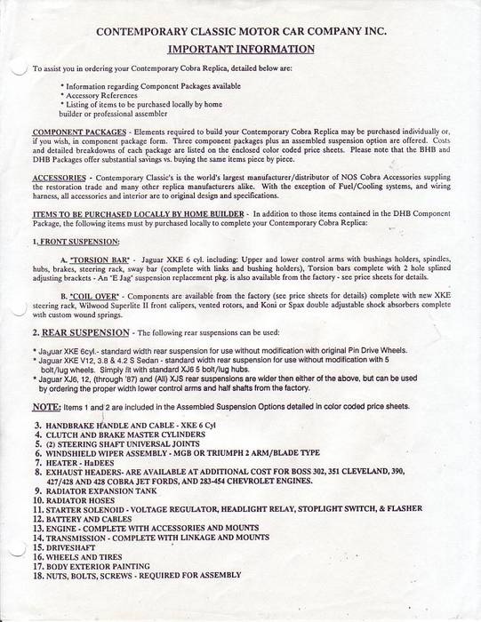 The only parts unique to a Contemporary Cobra were: