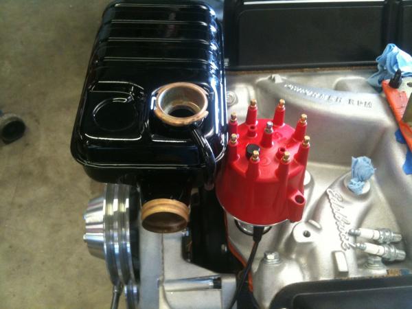 Thanks for the pictures. It looks like you have the same distributor that I have, but your expansion tank appears to have a spacer that mine didn't come with. When I get home I will look through the box again to see if it's in there and take some more pitures. My air cleaner is the long, oval one with Cobra on it that you see a lot. I will need to test fit that next to see how close it comes to the distributor. |