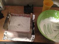 4. In order to keep the urethane from running out I poured about 1/2" of plaster paris on each side of my mold that contained the steel halfs.
