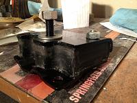 3. Load the steal halfs into the mold. Plan and drill a hole into the mold to pour the urethane and use grease or something similar for a mold release. This mold was one time use since the mounts are handed. I even glued the part lines to minimize leaks (lesson learned on the first mount)