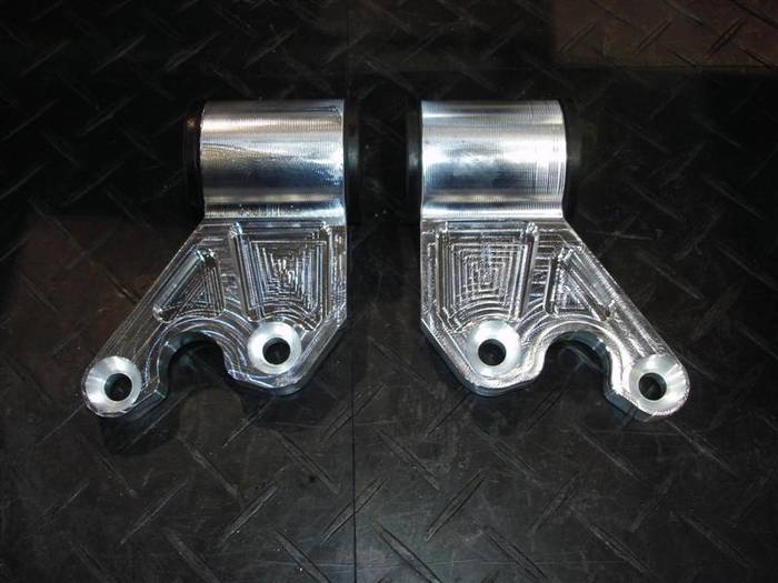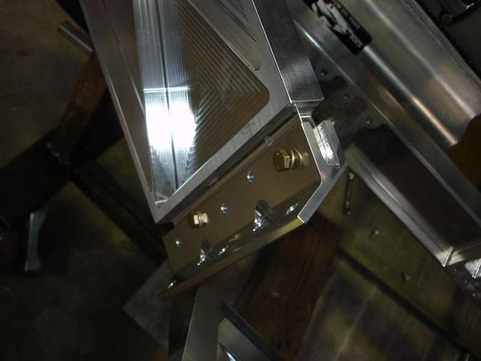 Again, on the front lower control arm in the above picture you can see we milled the crotch of the control arm in one motion so the cutter wouldn't stop and make an ugly mark 1/2 way through the arm.  We were very concerned about the tool paths on the parts and that they looked good. |