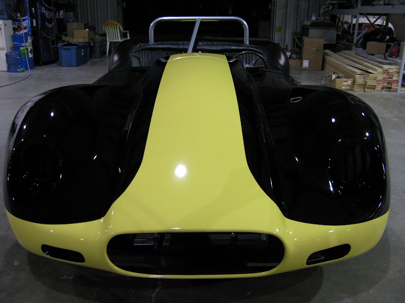 Here is a photo of the front of the Lister COOX car we did, painted it half way up the nose. Buffs out okay too and there is a line but its worth it.
