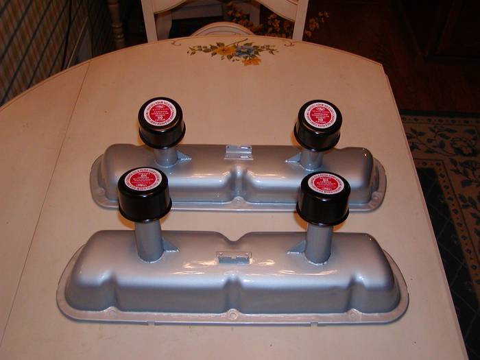 Got the idea from the original 289 Comp car vavle covers.......what was happening was the vent worked great,but after shut down a little oil/mist "pooled" in the K&N breather and since it was at an angle it dripped out the side of the breather element on the headers instead of draining straight down back into the engine........ I have seen pics of the old 289 comp car vavle covers,but can not find one now,maybe computerworks can find the photo and post it,it will give you an idea of what I'm talking about............ notice the photo FUNFER2 posted and you will see the vent tubes with the breathers stand straight up,so things drain straight down back into the system and not all over your motor........mine are very similar,except I welded a tube to each vavle cover coming straight up and use similar breathers....... the other thing is to route the vent to a catch can............... David |