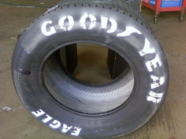 Kevin, good 'ol lacquer thinner should clean up/degrease the sidewalls without deteriorating the integrity of the rubber. Just pour a little on a rag and wipe...don't pour it on the tire directly. I would recommend mounting the tires first before painting. Go to an artist supply/crafts house and buy some wide, short-bristled brushes.