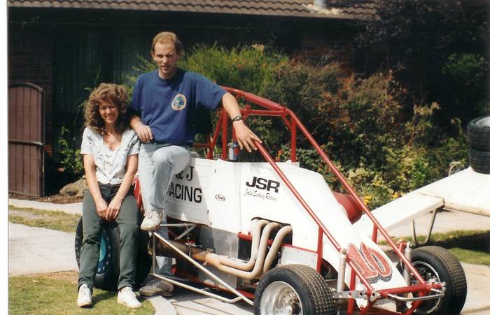Wife and son with volvo powerd speed car