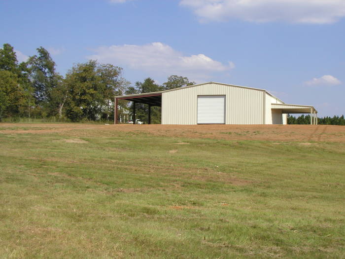 50x90ft x16ft height enclosed interior space 14x14ft overhead doors with 25x90ft drivethru on 1 side and a 20x45ft front porch overlooking pond on other side.