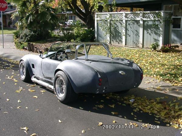 Cobra Chuck's LS 427 from the DS rear. It's ugly now but wait and see. Inferno Red, White Stripes with pink pearl clearcoat.