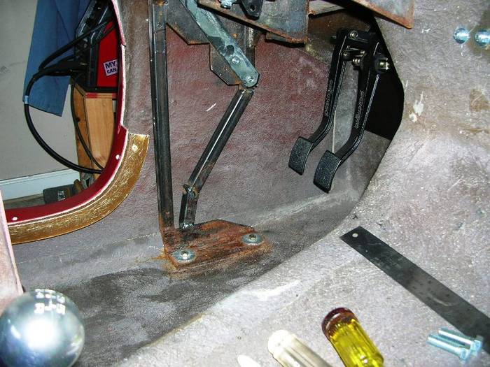 Moved the support brace back to openup footwell... added Wilwood and Lokar pedals and hydraulics...