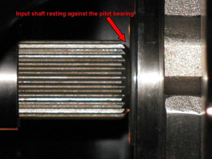 Input shat against pilot bearing