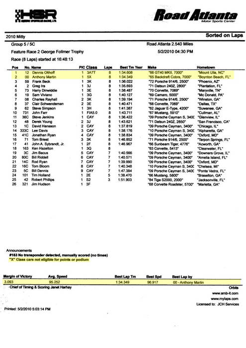 2010 Mitty Feature Race 2 Results