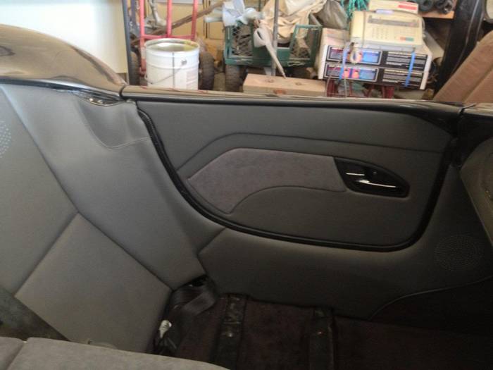 Door trimmed in leather and suede..no pockets, and door handle from BA Falc