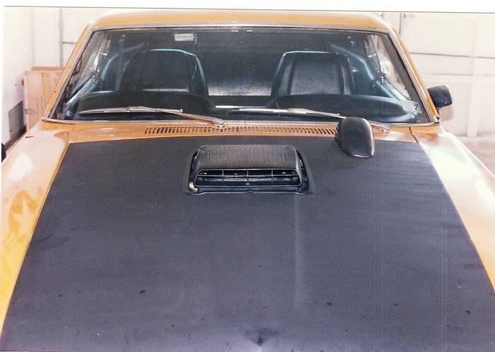 Same car after an accident. Sheet metal came from a Boss w/shaker, so what the heck! Tach is in the same place on hood.